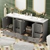 Upgrade your bathroom with this 72" double sink vanity, designed for both elegance and practicality. Featuring durable ceramic basins with overflow protection, it offers easy maintenance and safety. Spacious cabinets and multiple drawers provide smart storage for all essentials, while soft-close mechanisms ensure a quiet, comfortable experience. Built with painted MDF for stability and corrosion-resistant aluminum handles for durability, this vanity blends modern style with lasting performance. The open back panel simplifies plumbing installation, making it a perfect solution for organized, stylish, and functional bathrooms.