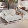 Designed for modern living, this modular sectional sofa combines comfort, flexibility, and smart storage in one stylish centerpiece. Upholstered in soft, breathable chenille fabric and supported by a sturdy solid wood frame, it delivers both durability and everyday comfort. Each seat is filled with high-quality sponge, offering a supportive yet relaxing sitting and lounging experience. Thanks to its modular design, the sofa can be freely rearranged into different layouts to suit your living room, bedroom, or home office, and it easily converts into a sleeper-style setup for guests. Hidden storage compartments beneath every seat provide ample space for blankets, books, clothes, and other essentials, helping keep your space neat and organized. Plastic clip connectors securely lock each seat together, preventing shifting and eliminating gaps. With multiple color options and a generous weight capacity of 330 lbs per seat, this sectional sofa is a practical, comfortable, and versatile solution for contemporary homes.