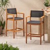 GDFStudio Daiquan Outdoor Mesh and Acacia Wood 30 Inch Barstools (Set of 2), Teak/Black