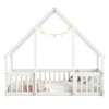 GDFStudio Dyras Modern Wooden House-Shaped Floor Bed with Fence and Guardrails