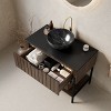 This modern freestanding bathroom vanity combines durability, function, and style. Featuring a sintered stone countertop, ceramic basin, and carbonized wood drawer panel, it offers superior resistance to moisture and wear. With ample storage space, a soft close drawer system, and easy assembly, it’s a stylish and practical upgrade for any bathroom.