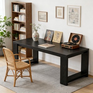 Versatile Multi-Use Function: More than just a dining table, this long wooden table easily adapts to your lifestyle. Use it as a chic two-person desk for home offices, a creative workspace, or a sleek conference table for meetings and collaborations. The warm wood grain finish complements a wide range of décor styles, allowing it to transition effortlessly between dining, working, and hosting without sacrificing style or functionality.