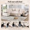 Designed for compact living spaces, this 6-seater sectional sleeper sofa bed delivers comfort, versatility, and smart storage in one modern design. Upholstered in soft chenille fabric, this L-shaped pull-out couch easily converts from a sofa into a spacious double sleeper bed, perfect for apartments or guest rooms. The adjustable multifunction armrest features USB & Type-C charging ports and built-in storage for daily essentials. A free-moving storage ottoman adds hidden organization and doubles as a side table with its reinforced wood lid. Complete with adjustable lumbar pillows and high-resilience foam, this modern sectional sofa bed with storage offers cloud-like comfort and long-lasting durability for everyday use.