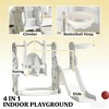 This 4-in-1 toddler slide playset turns any indoor space into a fun and safe activity zone. Featuring a slide, swing, climber, and basketball hoop, it encourages movement, coordination, and imaginative play. Made from durable HDPE with smooth edges and a stable triangular structure, it delivers dependable safety and comfort. The upgraded slide and secure swing offer extra peace of mind. Easy to assemble and designed for everyday play, it’s a perfect choice for active toddlers.