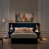 GDFStudio Noxon Modern Velvet Upholstered Bed Frame with Wingback Headboard, LED Lights, and 2 Floating Bedside Tables