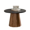 GDFStudio Parkey 23.62" Modern Round Coffee Table with Tree Bark Pattern, Black/Brown