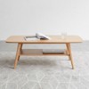 GDFStudio Wright Modern Solid Oak Wood Rectangle Coffee Table With Storage Shelf,, Natural/47.2"
