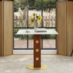 This modern square table features clean lines and a refined silhouette that complements contemporary, minimalist, and mid-century interiors with ease. The durable sintered stone tabletop offers a sleek marble-like look while resisting scratches, stains, and heat for effortless everyday use. Designed with a compact 33.5-inch profile, it fits perfectly in small kitchens, dining nooks, or apartments without sacrificing comfort. Solid wooden legs with reinforced support ensure sturdy construction, providing reliable stability for dining, working, or casual entertaining over time.