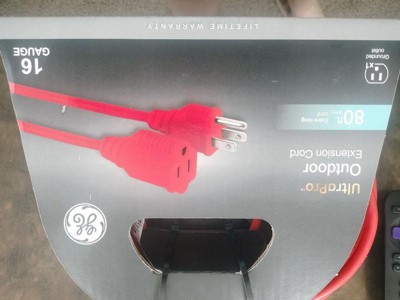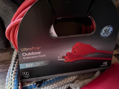 GE 1-Outlet Grounded Extension Cord Outdoor 16AWG 80' Orange: Heavy Duty, 10 Amp, 3-Conductor, Lifetime Warranty