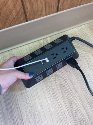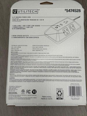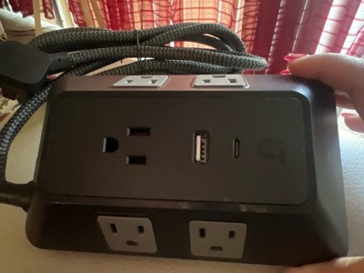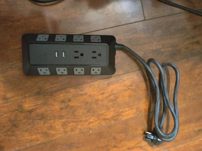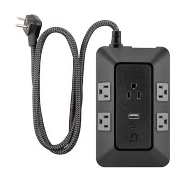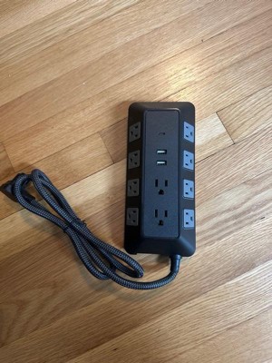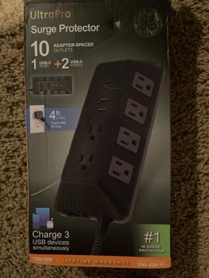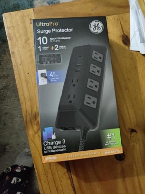 GE 10-Outlet Surge Protector 2 USB-A and 1 USB-C 3540J 4' Braided Cord Black: Extension Cord & Outlet Extender