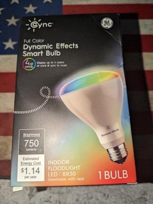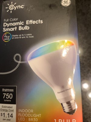 GE 65W Equivalent CYNC Dynamic Effects Smart LED BR30 Indoor Floodlight Bulb Alexa and Google Compatible Multicolored