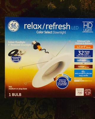 [This review was collected as part of a promotion.] GE relax / refresh color select 65w 6 inch recessed light is very bright and it has two different settings for brightness first setting is soft and second setting is daylight. It is very easy to install. I have mine set on daylight which is 4000k. It is very well built