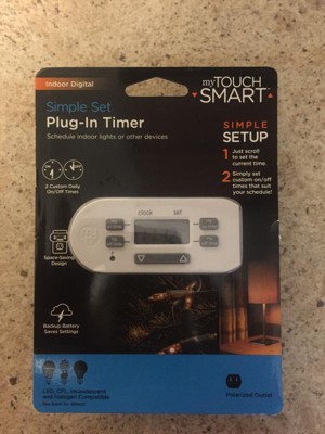 GE myTouchSmart Simple Set Digital Bar Timer 1-Polarized Outlet 2pk: Indoor Light Timer Plug, Push Button, White, No Assembly
