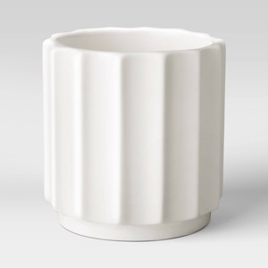 submitted bykdock - 3 years agoA: Hello - Thank you for reaching out about the Geared Stoneware Planter in White from Project 62. The overall dimension of the pot are 4.13 Inches (H) x 3.98 Inches (W) x 3.98 Inches (D). Hope this helps! - Dianida