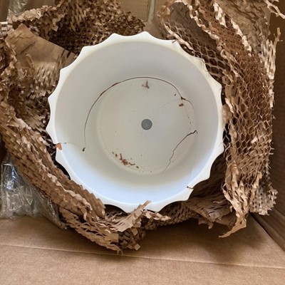 - Stoneware construction with a white finish for an industrial vibe