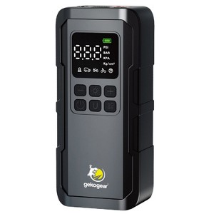 The GekoGear™ AirFlux 100 is a compact and portable tire pump equipped with a 2,000-mAh rechargeable battery. Ideal for on-the-go use, this device provides reliable and efficient inflation for car tires, bicycle tires, sports equipment, and more. Its user-friendly design features an easy-to-read digital display, preset pressure settings, and an automatic shutoff function to prevent overinflation. And the multifunction power bank lets you charge devices while on the go. Lightweight and convenient, the GekoGear™ AirFlux 100 ensures you’re always prepared for any inflation needs, wherever you are.