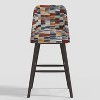 Stylish and contemporary, this Geller Modern Counter Height Bar Stool in Geometric from Threshold™ is just right for your kitchen, dining room or home pub. Built on a wooden frame with a black-finished look, this counter stool features a square, armless silhouette with a cotton-upholstered seat and a complementing ergonomic backrest, both featuring a geometric pattern that adds chic appeal to your decor. Plus, the four tubular, flared legs accompanied by sleek foot rails offer better balance.