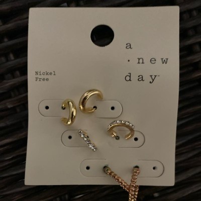 Gem and Ridged Hoop Earring Set 3pc - A New Day™ Gold: Nickel-Free Metal, Post Closure