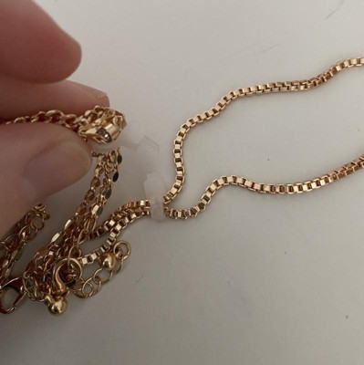 - Features a gold-hue chain with crystal studs, a box chain and a twisted chain