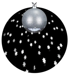 - CHRISTMAS LIGHT: Hanging lawn ornament with LightShow Projection Snowdrift technology, metallic silver exterior
