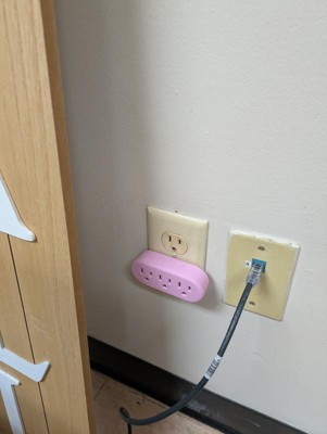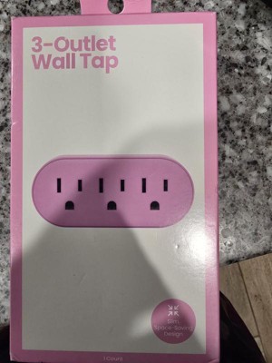 This compact pink wall plug is both cute and practical. It offers three outlets that fit standard-sized plugs perfectly, making it great for small spaces or travel. However, if you’re using larger or bulky plugs, you’ll likely be able to fit only two at a time. Overall, it’s a stylish and convenient way to add extra outlets without taking up much room.