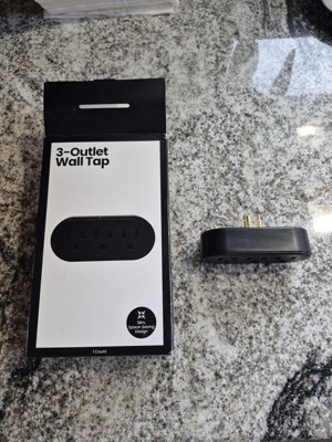 The three-outlet wall tap is exactly what my son needed in his room. This wall tap comes in black and white. It works with standard home outlets and is built with durable construction. My son was needing this so he could plug in a fan, a phone charger, a light, and also a humidifier all at the same time. This three-outlet wall tap sure did the job. I like that this wall tap is built slim and not bulky. As you can see in my pictures, everything fits perfectly. I definitely recommend this three-outlet wall tap.