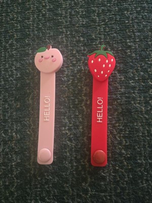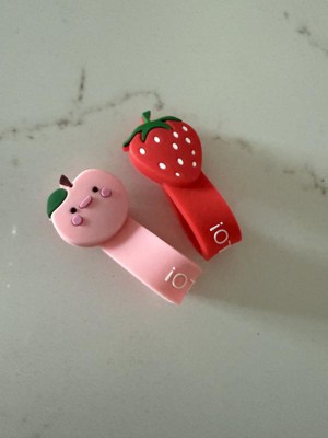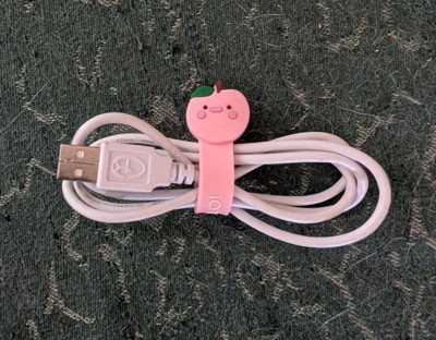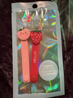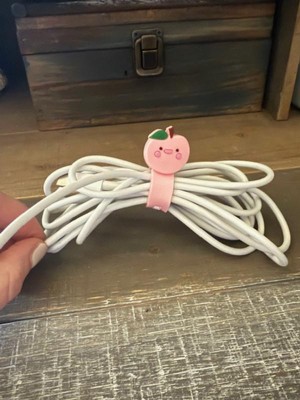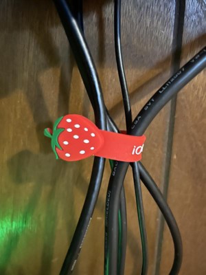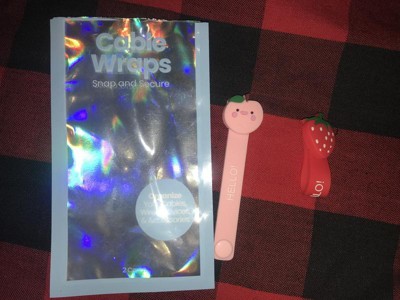 The cable wraps are very cute. One wrap is a red strawberry and the other is a pink apple. This is a fun and visually appealing way to organize my home! My children also loved seeing these and actually put them back on!