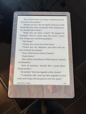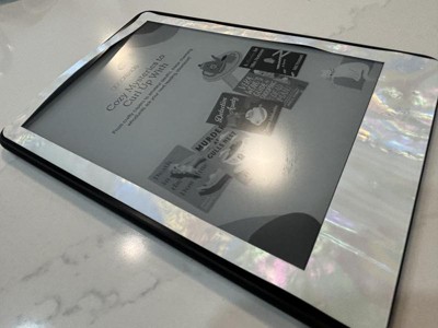 Hello, thanks for your review! We're thrilled to hear you're enjoying the GEMS E-Reader Decal Skin and its trendy iridescent pattern. We appreciate your feedback and hope it continues to add some fun style to your device!