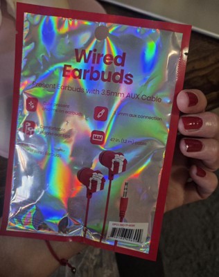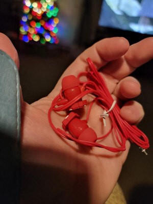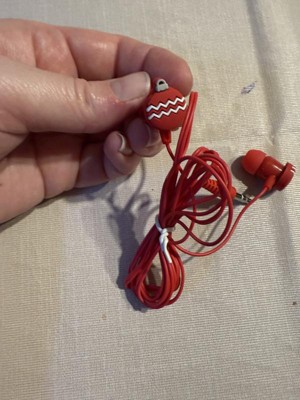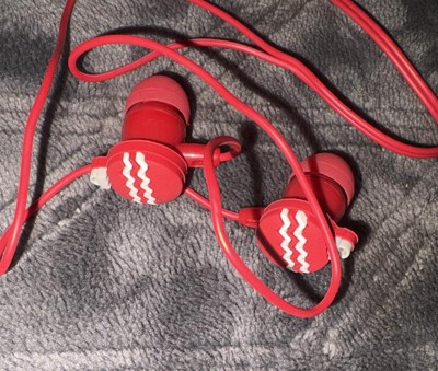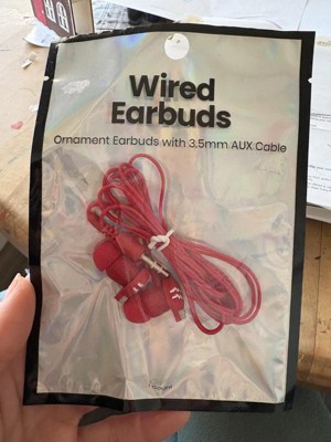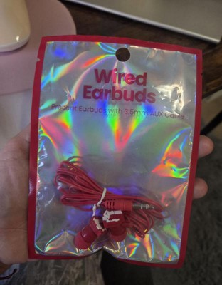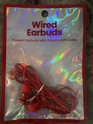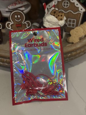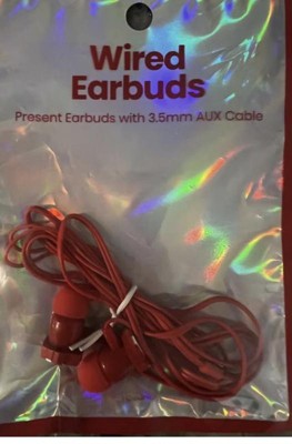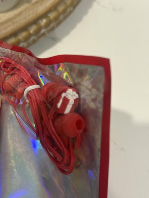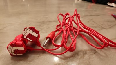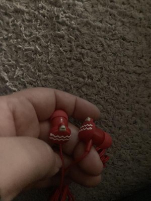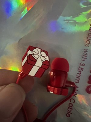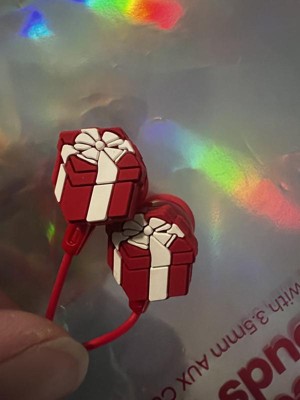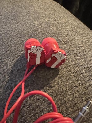 The packaging is eye-catching and the earbuds themselves look clean and vibrant in red. Christmas themed headphones.
