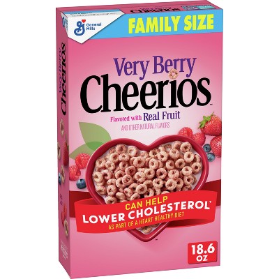 Morning is a little brighter with Very Berry Cheerios Cereal. With the taste of real berries in every bite, the goodness of Cheerios just got a little sweeter. The taste of strawberries, raspberries, blueberries and other natural flavors help make breakfast cereal that's so berry good, you may enjoy a bowlful every morning. Pass this oat cereal around the family table or pour a bagful for gluten free snacks. Each O is made with no high fructose corn syrup and no artificial flavors or colors from artificial sources. The gluten free cereal offers 12 essential vitamins and minerals.