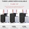 [ 100L Extra Large Duffle Bag ] : With a generous capacity of 120 liters, this duffle bag is roomy enough to hold the belongings of a family of 3 people for 5-7 days of travel. It weighs about 80% less than your empty suitcase, but can also provide the same solid package. Say goodbye to bulky, hard-to-store luggage and hello to the convenience of a collapsible duffle bag.