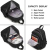 Multi-pocket design: The book bag has a main compartment with a large padded pouch that can fit items up to 15.6 inches, a front pocket for pens, 2 side pockets for water bottles, and umbrellas, and a hidden zipper pocket on the back for a phone, etc.