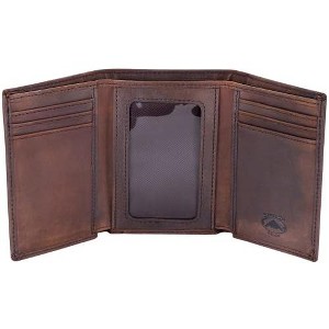 This men's leather trifold wallet features quality napa leather, 9 card slots and an ID window, divided billfold, and our secure RFID blocking lining to keep your personal and financial info safe.