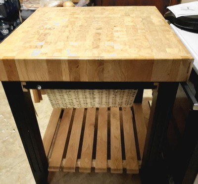 Q: What are the care and cleaning recommendations for the "butcherblock" top? What is the top portion made of?