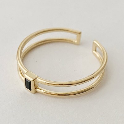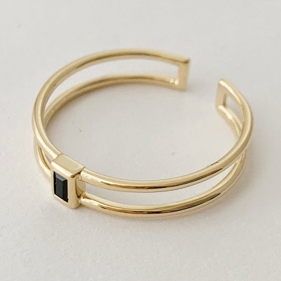 A sleek double-stacked ring centered with a black crystal. Genevieve may look dainty, but don’t let her fool you - she’s a true statement maker. The band measures 4.5 mm thick.