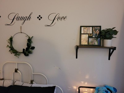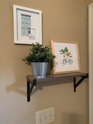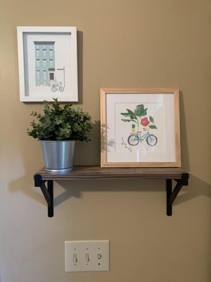 What a cute little shelf. I needed a small shelf in my entryway to spruce things up. Perfect size for a few decorative things. It was very easy to assemble and hang. Love the metal brackets and wood toned shelf.