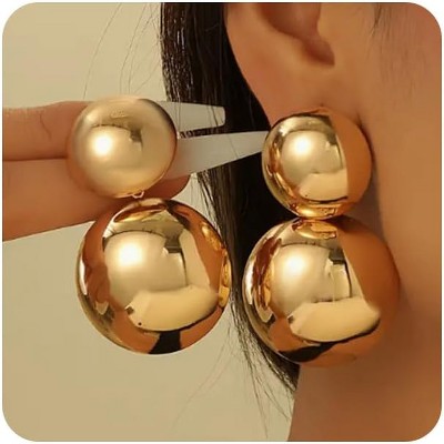 - Bold Half-Ball Statement Earrings: These aren't your average hoops! The chunky half-sphere design gives major retro vibes with a modern twist. Choose from three killer styles - each featuring that signature high-polish gold finish that catches every light