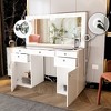 - Ample Storage: Organize your beauty essentials in style with four regular drawers, one large central drawer, and two bottom doors. Everything has a designated place to keep your cute vanity, organized