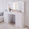 This vanity desk with lights is expertly crafted with high-quality materials to ensure durability and longevity. Experience the ultimate in luxury and style for all your beauty needs. Order yours today and transform your space into a glamorous oasis.