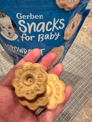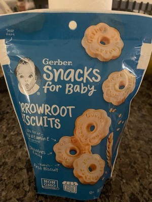 - BABY SNACKS FOR SMALL HANDS: Make snack time fun with Gerber Arrowroot Biscuits. They are the perfect baby snacks for busy parents who need a convenient option for their little one