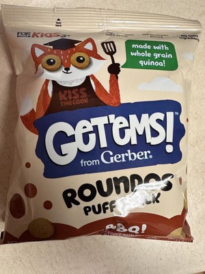 - ALL AROUND, WELL-ROUNDED YUMMY GOODNESS: Enriched with calcium and made with real whole grain quinoa, our Get’ems from Gerber BBQ Roundos Puffs Snacks offer wholesome, tasty nutrition in every munch