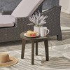 Add a perfect balance of charm and function to your outdoor space with an accessory of long-established aesthetics. With a circular tabletop and classic slat paneling, this end table is an excellent sidekick for your existing outdoor furniture. This side table is made from durable acacia wood, making it perfect for holding a tray of snacks or a fresh pitcher of lemonade.