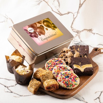 - THE SWEETEST MOTHERS DAY GIFT: Loaded with a handpicked selection of the finest Cookies and Pastries. Gift tin includes a thoughtful assortment of 3 Sprinkle Cookies, 2 3oz Blueberry Muffins, 3 Assorted Brownies-flavors may include: Chocolate Cheese, Chocolate Chip Blondie, Chocolate Fudge, and/or Walnut and 1/4 Lb. Assorted Rugelah-flavors include: Apricot, Raspberry, Cinnamon Sugar and/or Chocolate Chip.
