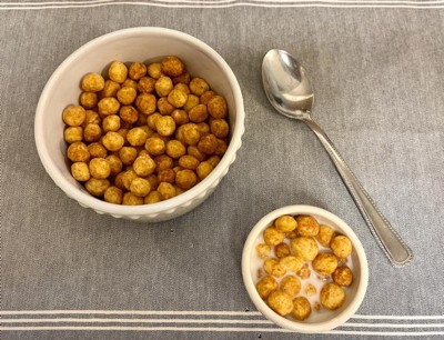 [This review was collected as part of a promotion.] This ghost cereal is very high in protein containing 18 grams of protein in one cup. That’s almost a third of the recommended daily allowance. It’s low in sugars which is good. I wasn’t a fan of the taste but my grandson loved it as a snack in his lunchbox. It’s crunchy but softens quickly with milk.