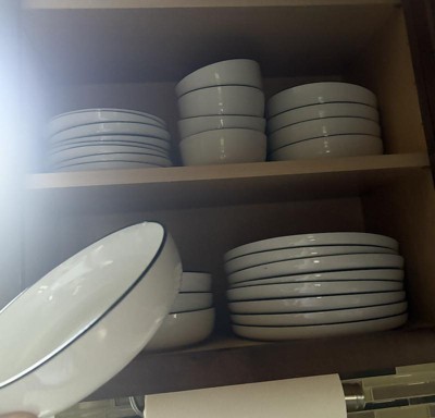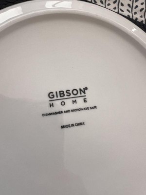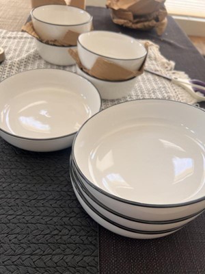 Gibson Home Oslo 16pc Dinnerware Set Black Rim: Porcelain, Service for 4, Dishwasher-Safe, Solid Pattern