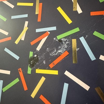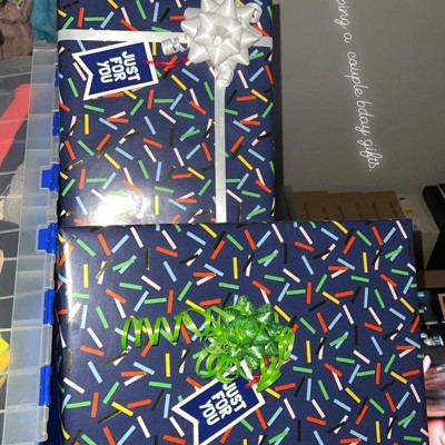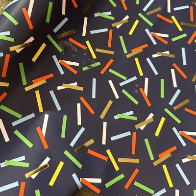 Need a fast and easy fix? The Gift Wrap Shapes Printed Pattern from Spritz will surely brighten up someone's day. This gift wrap features a combination of multi-colored confetti with gold foil on navy. The background color easily coordinates with a variety of bows, ribbons or other gift wrapping accessories, and the 94.5-inch by 30-inch roll size makes it easy to wrap gifts of various shapes and sizes.