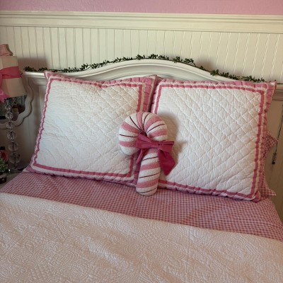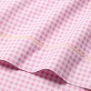 Add a touch of classic charm to your child's room with this Gingham Kids' Cotton Sheet Set from Pillowfort™. This printed sheet set includes one fitted sheet that fits mattresses up to 16 inches deep, one flat sheet and one pillowcase, each made from 100% cotton percale fabric for a soft feel and crisp finish. Featuring a pink gingham print on a white background, these bedding pieces are sure to bring sweet flair to their room. Best of all, you can toss them in the washing machine for a quick refresh whenever needed.