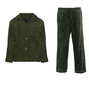 100% Polyester, 2 Piece Super Soft Plush Set, Button Closure, Left Pocket, Elastic Waist With Button Fly Pants, Top: Button Up Shirt, Patch chest Pocket, Relax Fit though body. Pants: Practical Front Closure Hidden Button Fly and Elastic Waist for a comfy fit with no-pinch discomfort and to ensure pants stay in place, 2 Functional Side Pockets