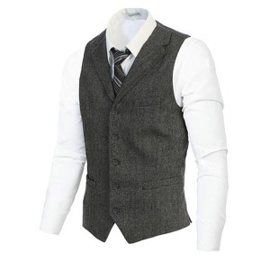 Gioberti Men's 5 Button Tailored Collar Slim Fit Formal Herringbone Tweed Suit Vest - 1 of 4