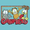 Join everyone's favorite lazy house cat with this everyday officially licensed Nickelodeon Garfield Girls' Tahiti Blue Tee! This cute shirt features Garfield, Odie, and Nermal excitedly raising their arms with big smiles on their faces while red and yellow lines frame them, and the classic Garfield red logo is printed below in a distressed style. Dress in style with this new graphic tee, and you will surely attract all the Garfield fans!